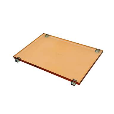 Crystal Glass Tray with Inner Gemstones This tray is created of thick and durable clear glass. Note: This is not a mirror tray. Dimensions: 16.5" x...