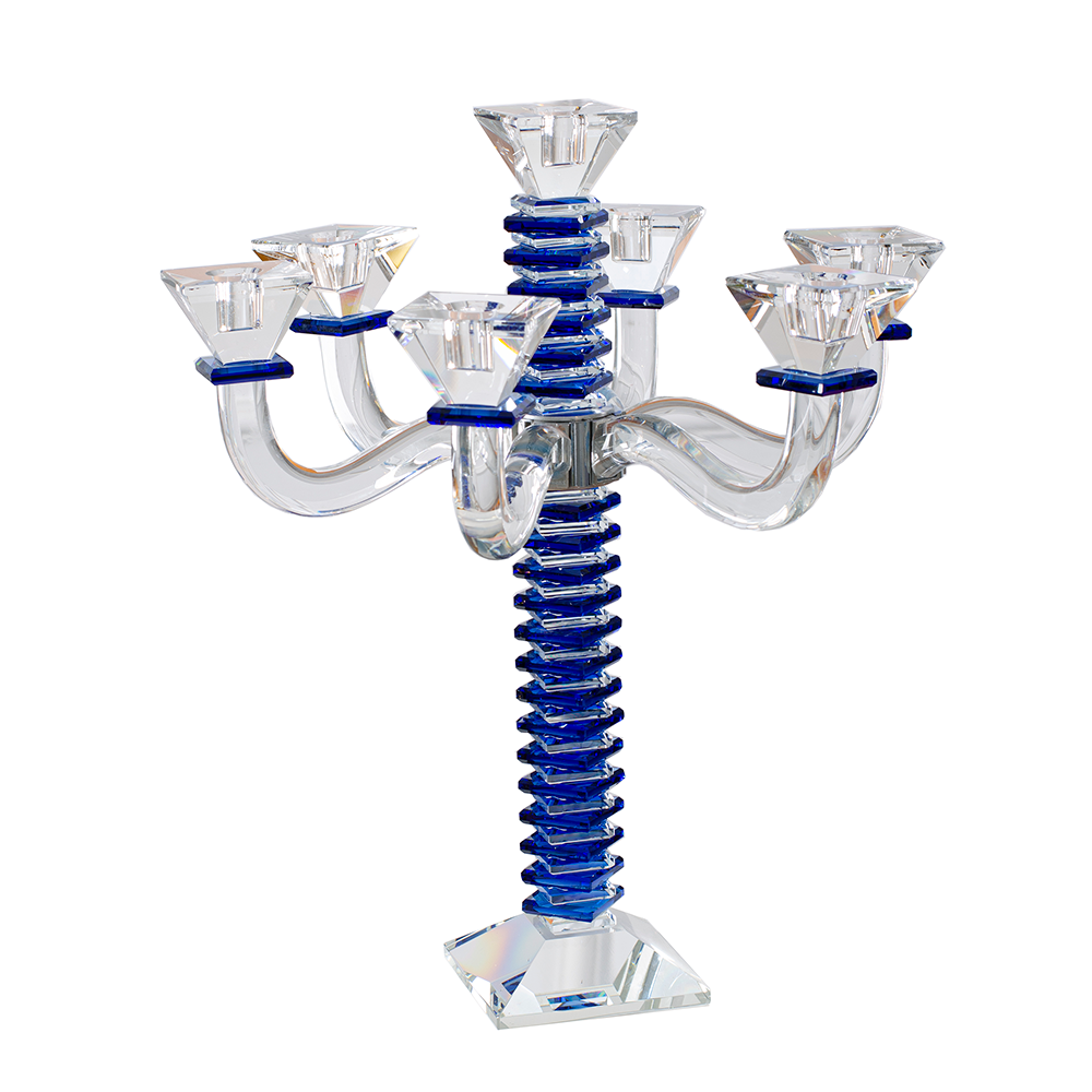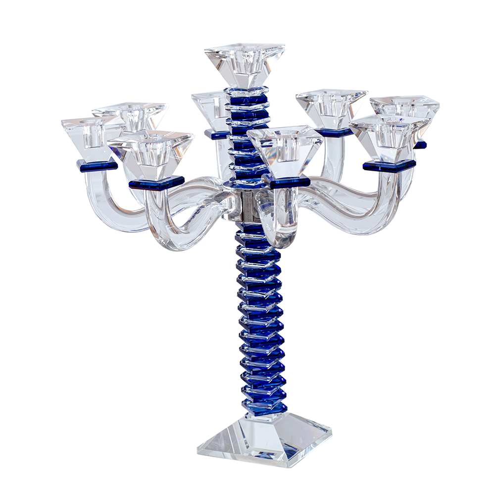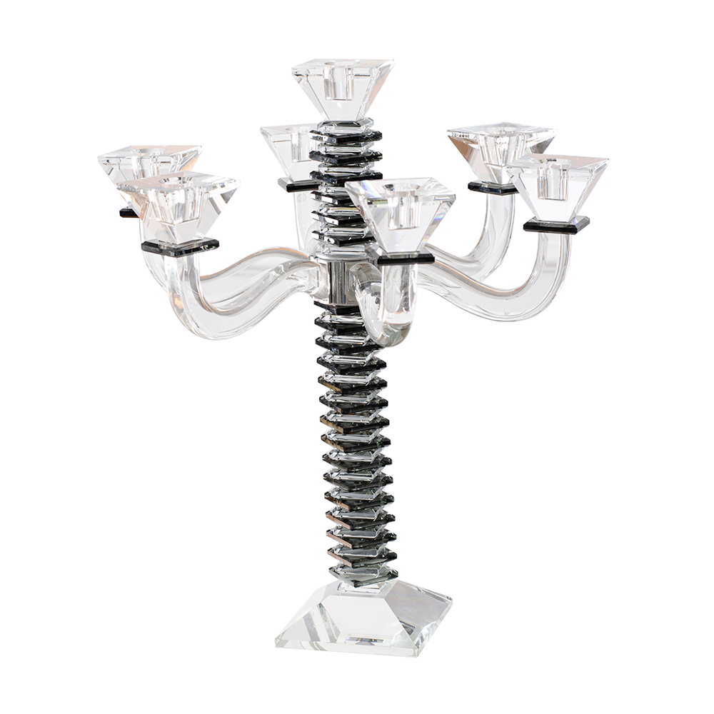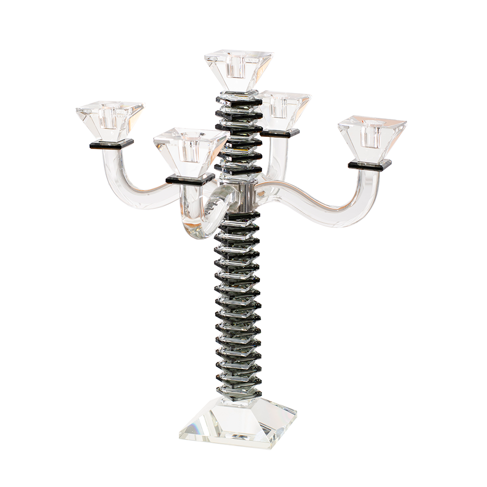 These beautiful stacked design crystal candelabras are a stylish addition to the candle lighting finery. Created of impeccable crystal with stained blue, black or amber crystal accents, these are designed to infuse a fresh yet traditional ambiance in your home.