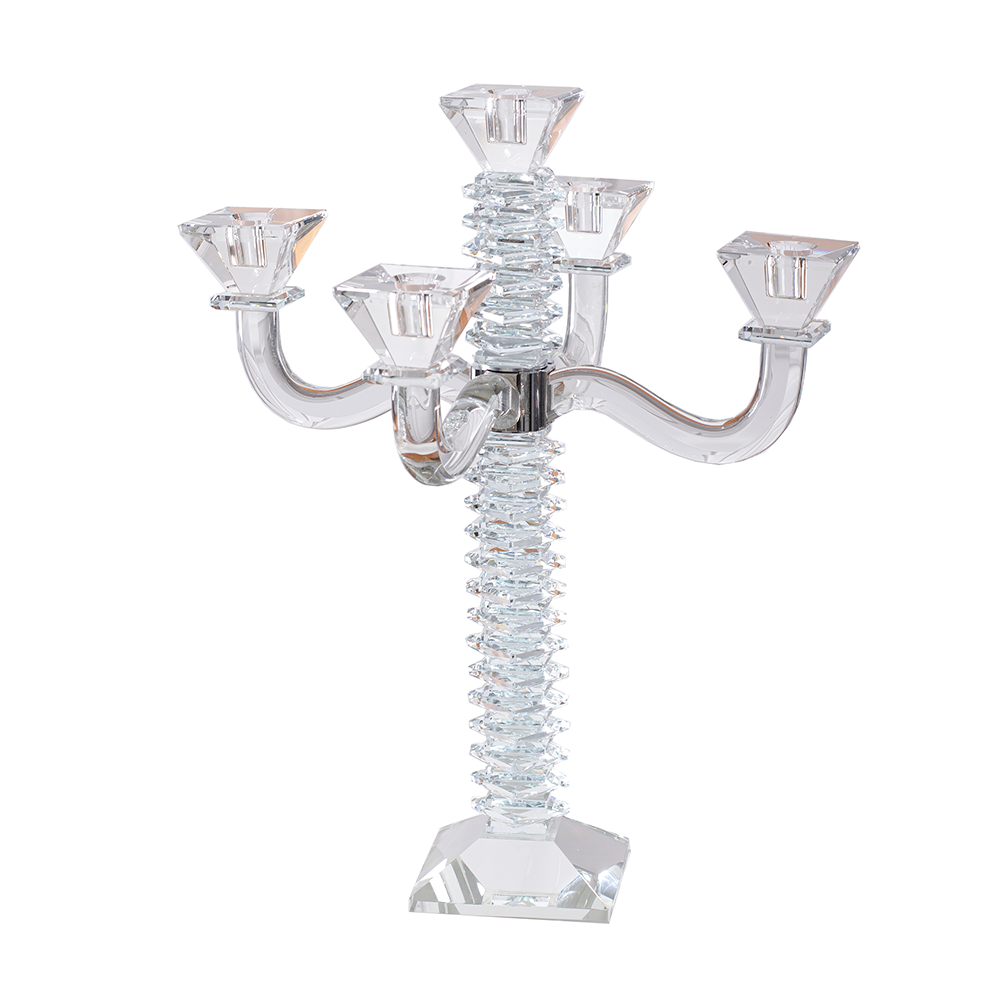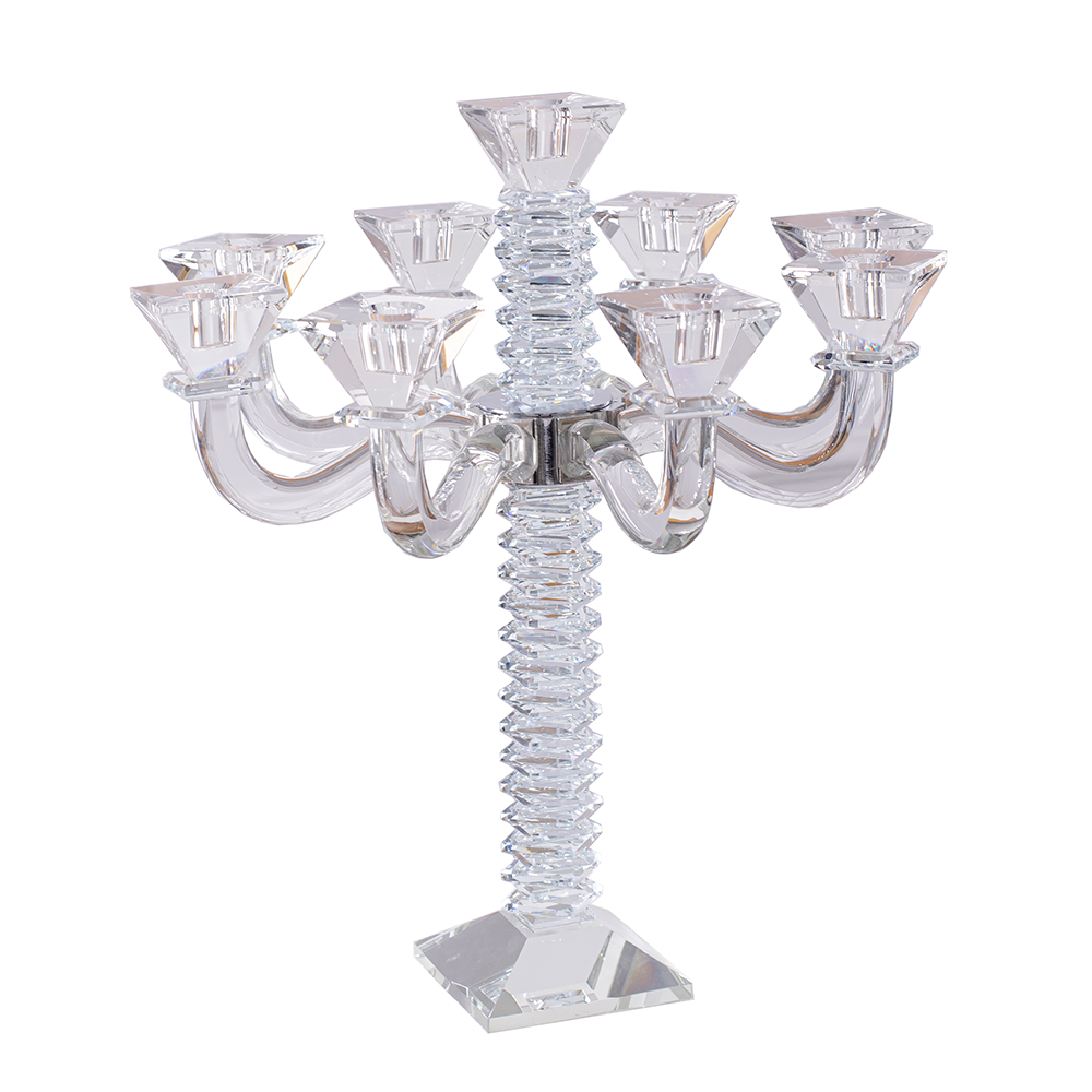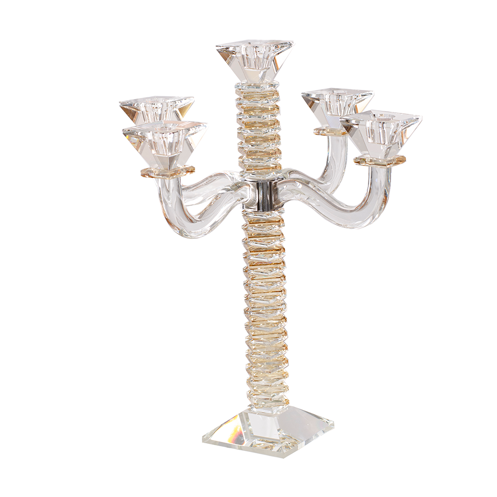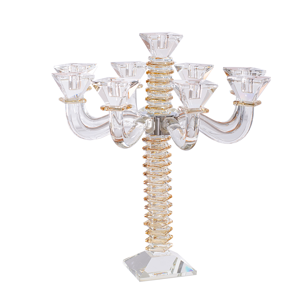 These beautiful stacked design crystal candelabras are a stylish addition to the candle lighting finery. Created of impeccable crystal with stained blue, black or amber crystal accents, these are designed to infuse a fresh yet traditional ambiance in your home.